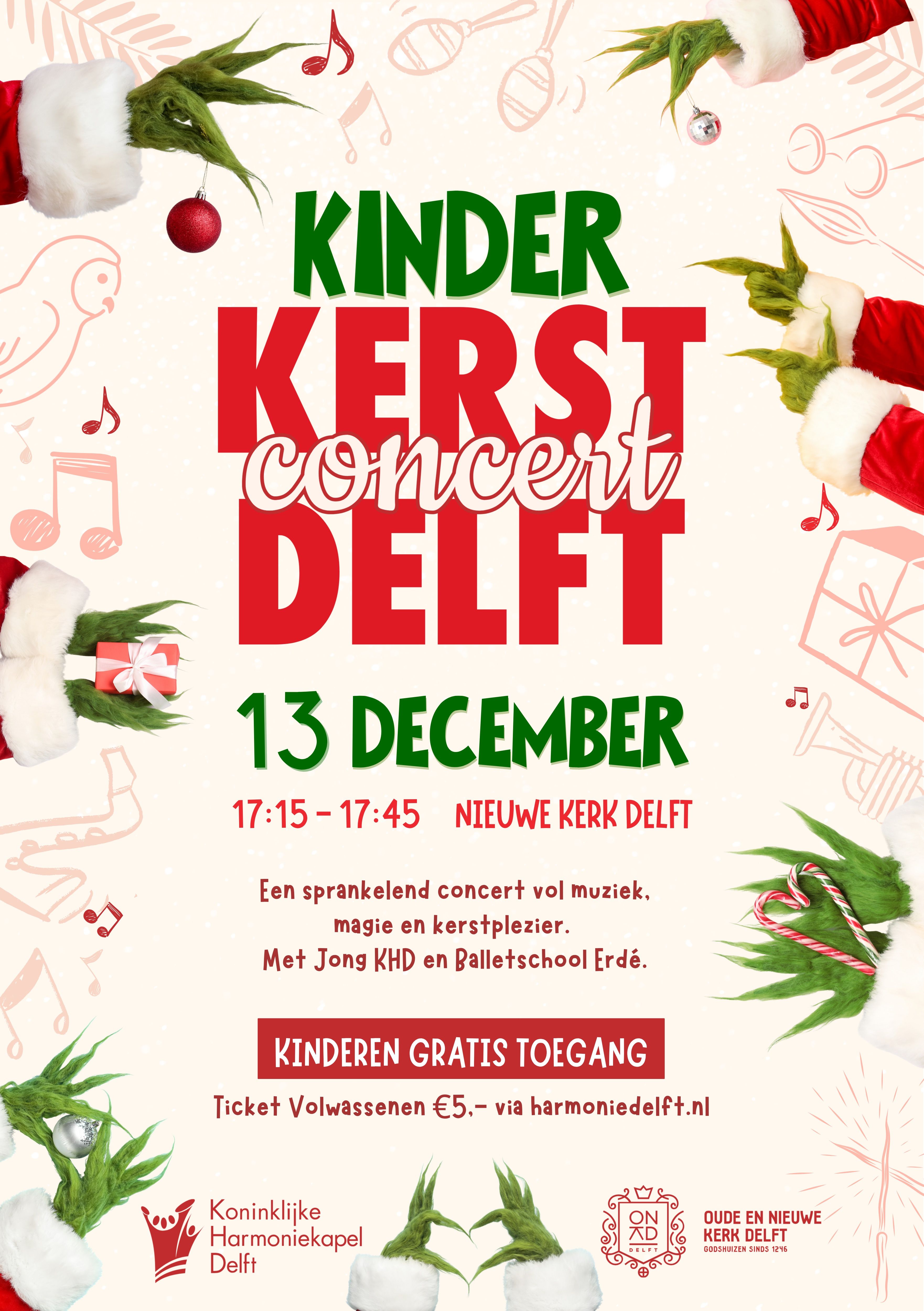 Van 17.15 tot 17.45 uur dirigeert Bram Soentjens het jeugdorkest Jong KHD tijdens een sprankelend kinderkerstconcert vol muziek, magie en kerstplezier. Een half uur lang kun je komen luisteren naar herkenbare en swingende muziek, zoals Jingle Bell Rock, Harry Potter en zelfs de Grinch! En natuurlijk mag Niets is cooler dan kerstmis niet ontbreken.